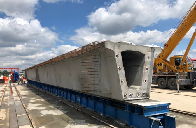 預制箱梁模板具有精度高、結構簡單、整體縮放自如、脫模容易、操作簡單,可以整體吊裝或拖拉到制梁臺位上,待預制混凝土達到脫模強度后整體或反段脫模,將內(nèi)模拖拉出已預制成型的箱梁內(nèi)腔,操作人員安裝及調(diào)試方便,勞動強度低,生產(chǎn)。